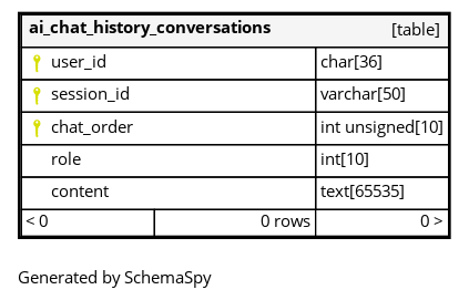 | PRIMARY | Primary key | Asc/Asc/Asc | user_id + session_id + chat_order |