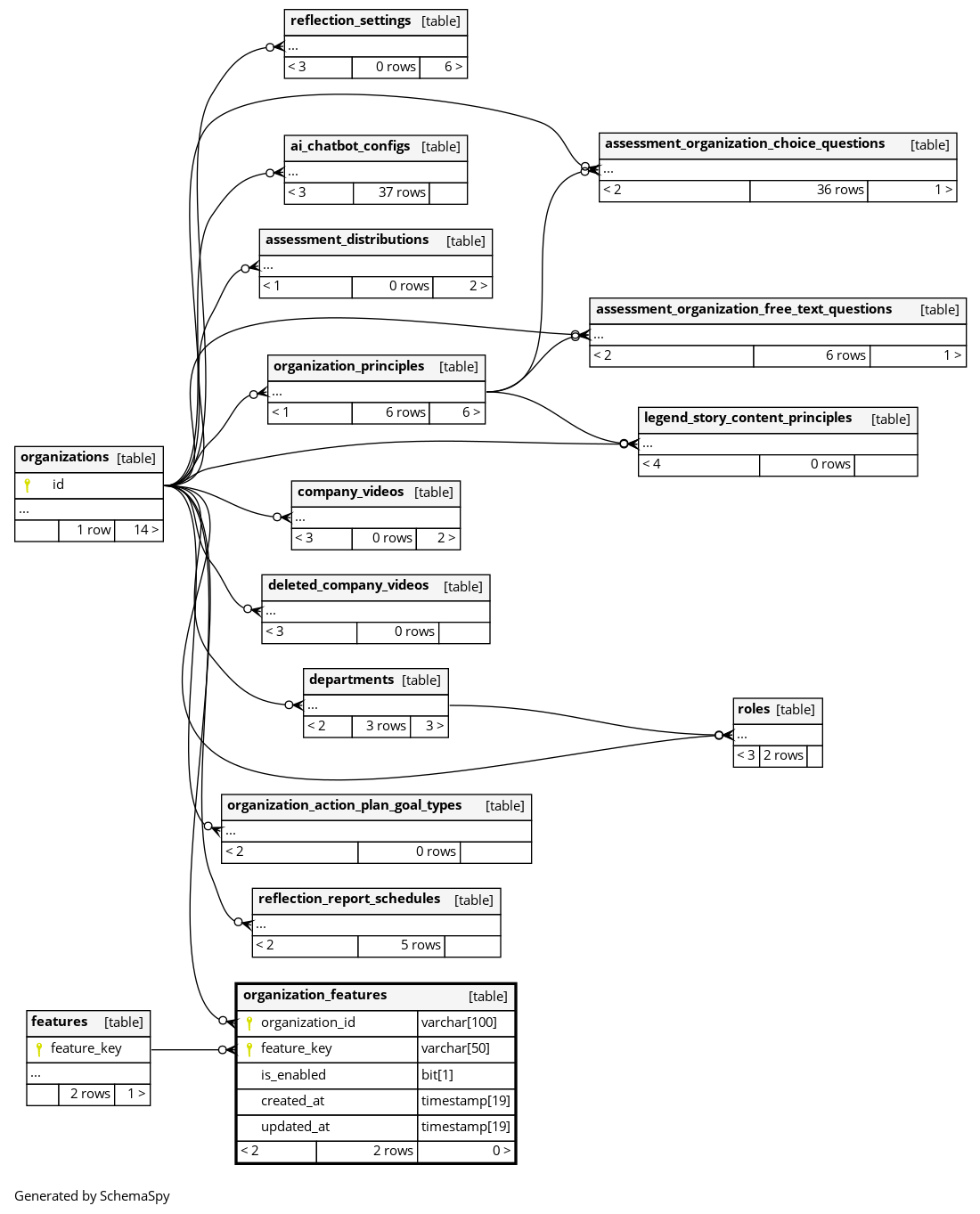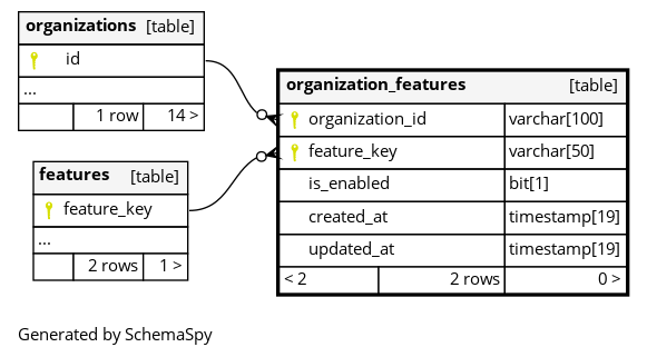 | PRIMARY | Primary key | Asc/Asc | organization_id + feature_key |