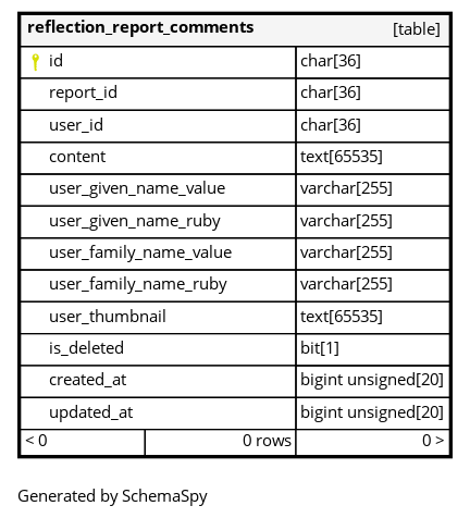 | Column | Type | Size | Nulls | Auto | Default | Children | Parents | Comments |