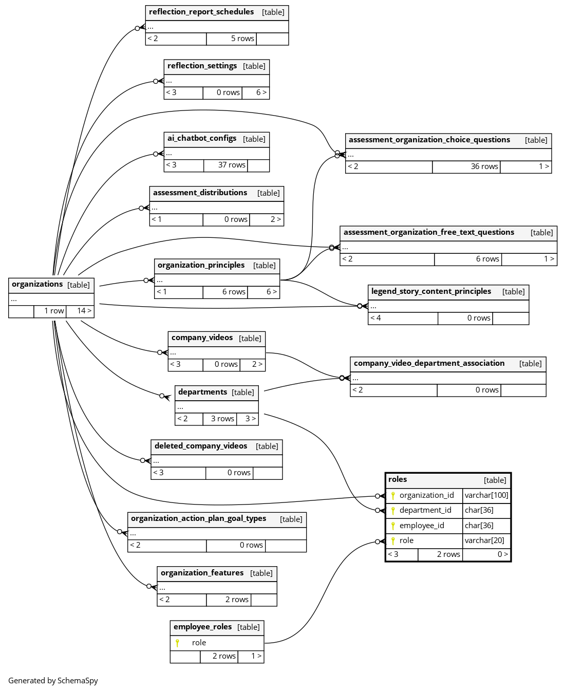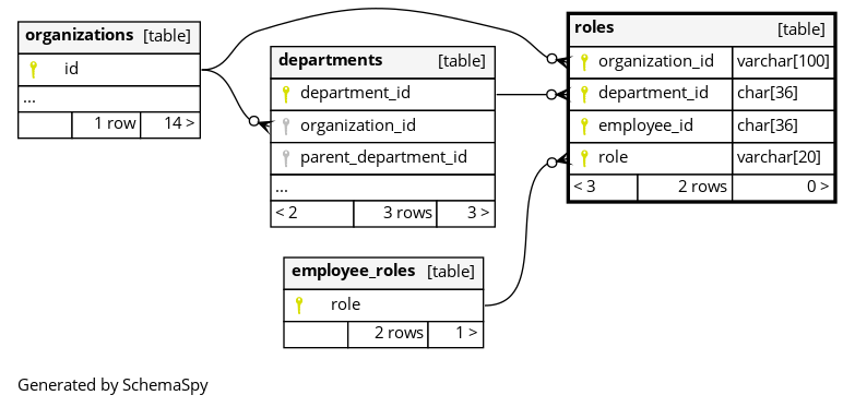 PRIMARY Primary key Asc/Asc/Asc/Asc organization_id + department_id + employee_id + role