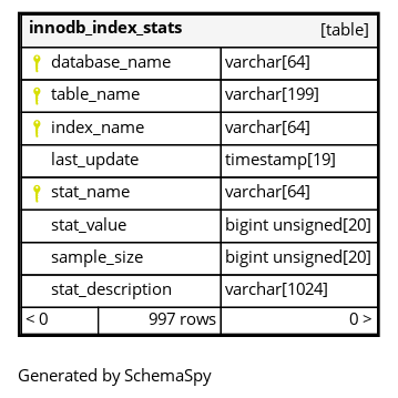 | PRIMARY | Primary key | Asc/Asc/Asc/Asc | database_name + table_name + index_name + stat_name |