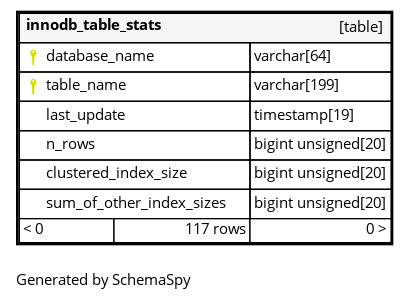 | clustered_index_size | BIGINT UNSIGNED | 20 | null |