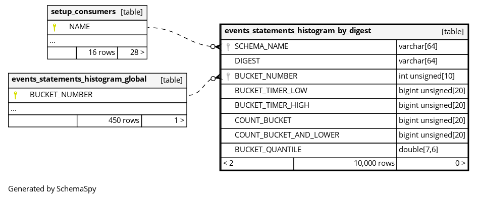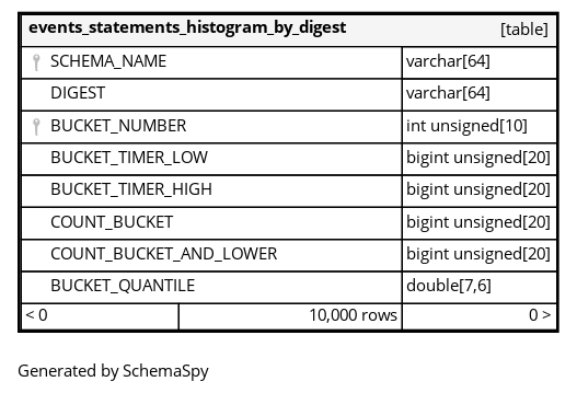 | SCHEMA_NAME | Must be unique | Asc/Asc/Asc | SCHEMA_NAME + DIGEST + BUCKET_NUMBER |