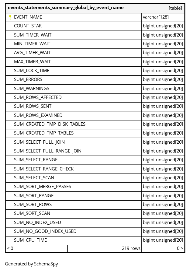 | PRIMARY | Primary key | Asc | EVENT_NAME |