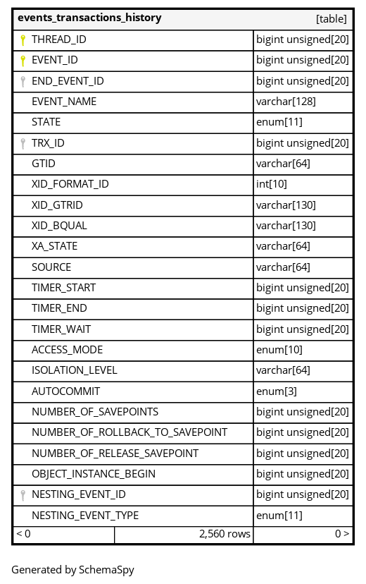 | PRIMARY | Primary key | Asc/Asc | THREAD_ID + EVENT_ID |