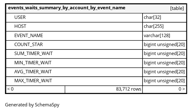 | ACCOUNT | Must be unique | Asc/Asc/Asc | USER + HOST + EVENT_NAME |