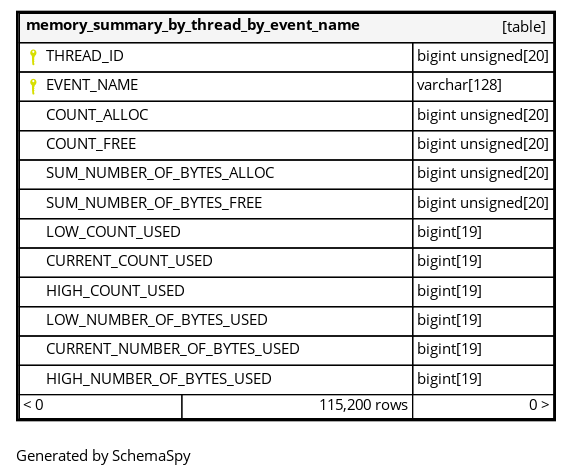 | PRIMARY | Primary key | Asc/Asc | THREAD_ID + EVENT_NAME |