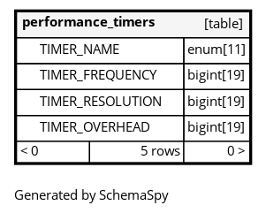 | TIMER_NAME | enum('CYCLE', 'NANOSECOND', 'MICROSECOND', 'MILLISECOND', 'THREAD_CPU') | 11 | null |