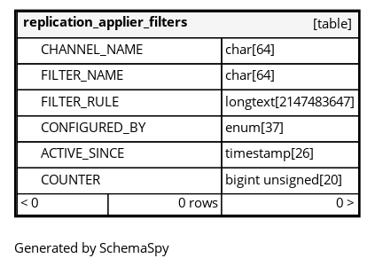| FILTER_RULE | LONGTEXT | 2147483647 | null |