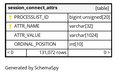 PRIMARY Primary key Asc/Asc PROCESSLIST_ID + ATTR_NAME