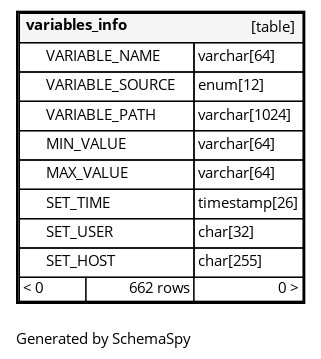 | VARIABLE_NAME | VARCHAR | 64 | null |
